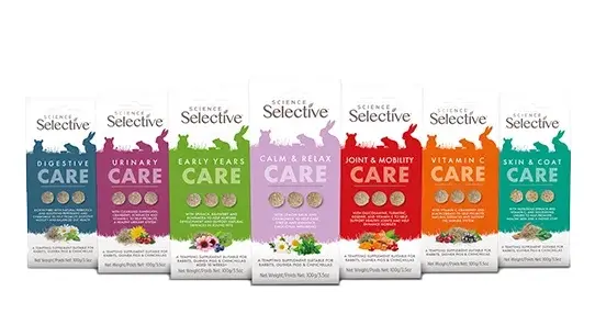 Supreme Petfoods - Science Selective hecht het grootste belang aan de gezondheid en het welzijn van jouw lievelingen! Daarom hebben ze een speciale lijn verzorgingssupplementen ontwikkeld, speciaal afgestemd op de voedingsbehoeften van konijnen, cavia’s en chinchilla’s.