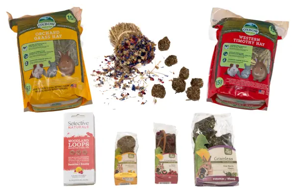 The ideal assortment to provide your small rodents with a proper meal every day! Hay, dried herbs, willow branches, pellets, supplements, and healthy snacks.
